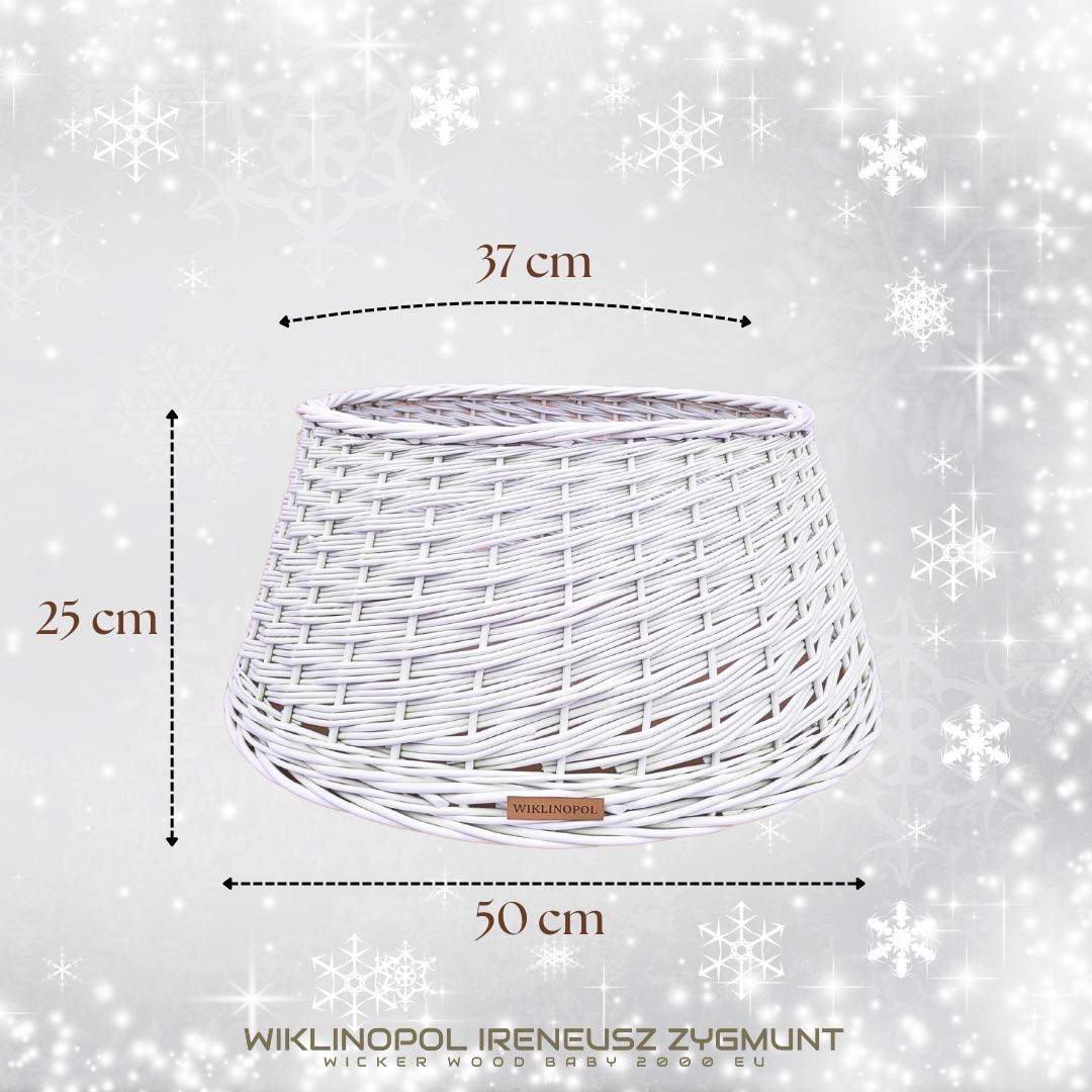Biała osłona wiklinowa o średnicy 50 cm to idealny sposób, by zakryć stojak pod choinką i nadać wnętrzu świąteczny, przytulny klimat. Ręcznie pleciona z polskiej wikliny, jest trwała, lekka i pięknie prezentuje się pod każdą choinką – zarówno żywą, jak i sztuczną.
